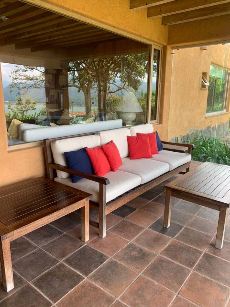 Hermosa casa en condominio en Valle de Bravo, con una vista espectacular al lago, con espacios muy amplios muy buena iluminación en toda la casa, tiene dos terrazas muy agradables con vista al jardín. La casa esta formada en dos niveles, el nivel de arriba tiene 1/2 baño de visitas , lavandería y un patio central , 2 recamaras con baño completo, estudio con chimenea, sala comedor , cocina integral amplia y terraza con vista al lago. Planta baja, 2 recamaras con baño completo y ventilación natural, sala abierta entre las recamaras , terraza con vista al jardín. El jardín rodea toda la casa, tiene forma descendente con un jacuzzi en la parte baja del jardín y un pequeño mirador con la mejor vista al lago. La cereza del pastel tiene un bungaló independiente en la entrada de la casa con baño completo y una lancha!!! La casa se vende amueblada. |